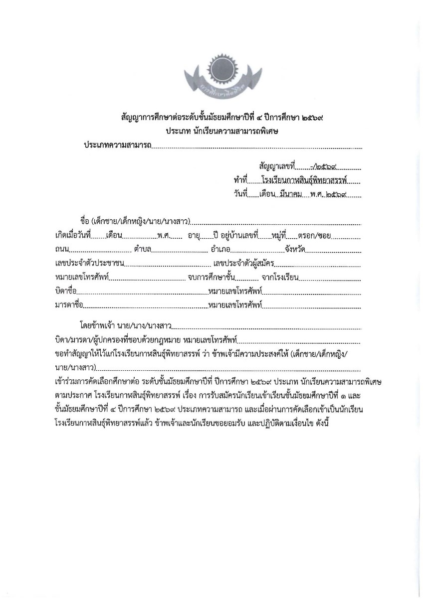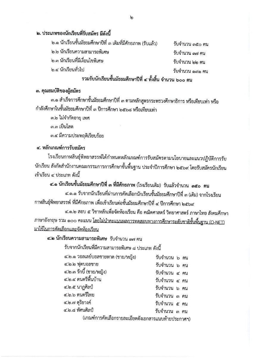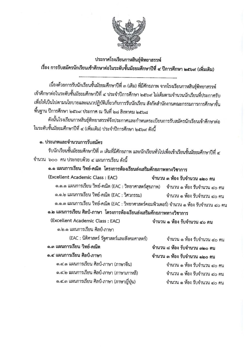 การรับสมัครนักเรียนเข้าศึกษาต่อในระดับชั้นมัธยมศึกษาปีที่ 4 ปีการศึกษา2569 (เพิ่มเติม)
