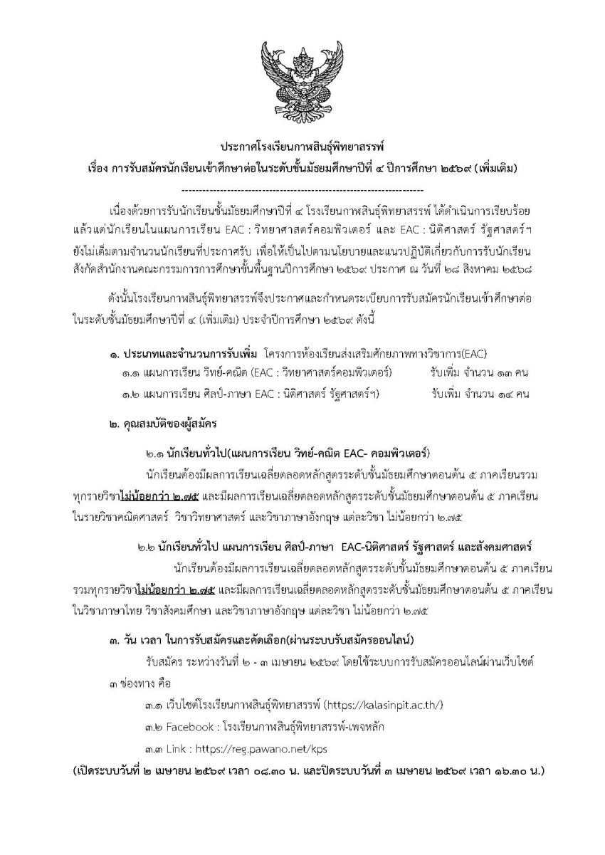 #ประกาศรายชื่อผู้มีสิทธิ์สอบคัดเลือกเข้าเรียนต่อระดับชั้นมัธยมศึกษาปีที่ 1 ประเภท ความสามารถพิเศษ ปีการศึกษา 2569