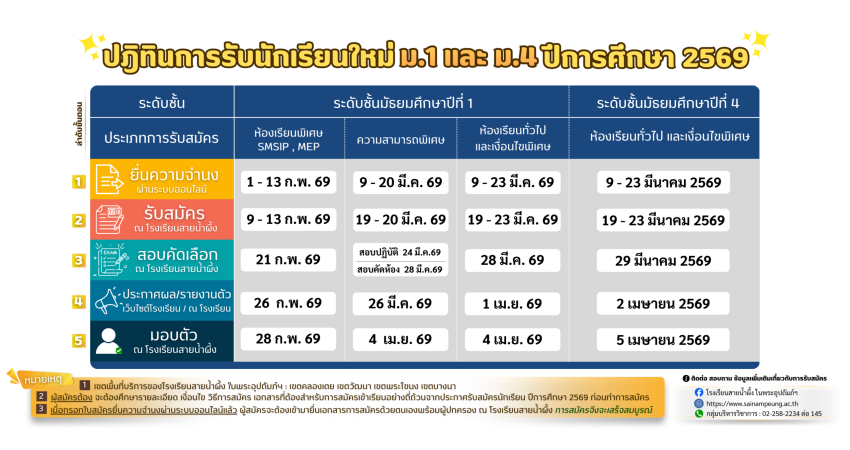 ปฏิทินการรับนักเรียน ประจำปีการศึกษา 2569