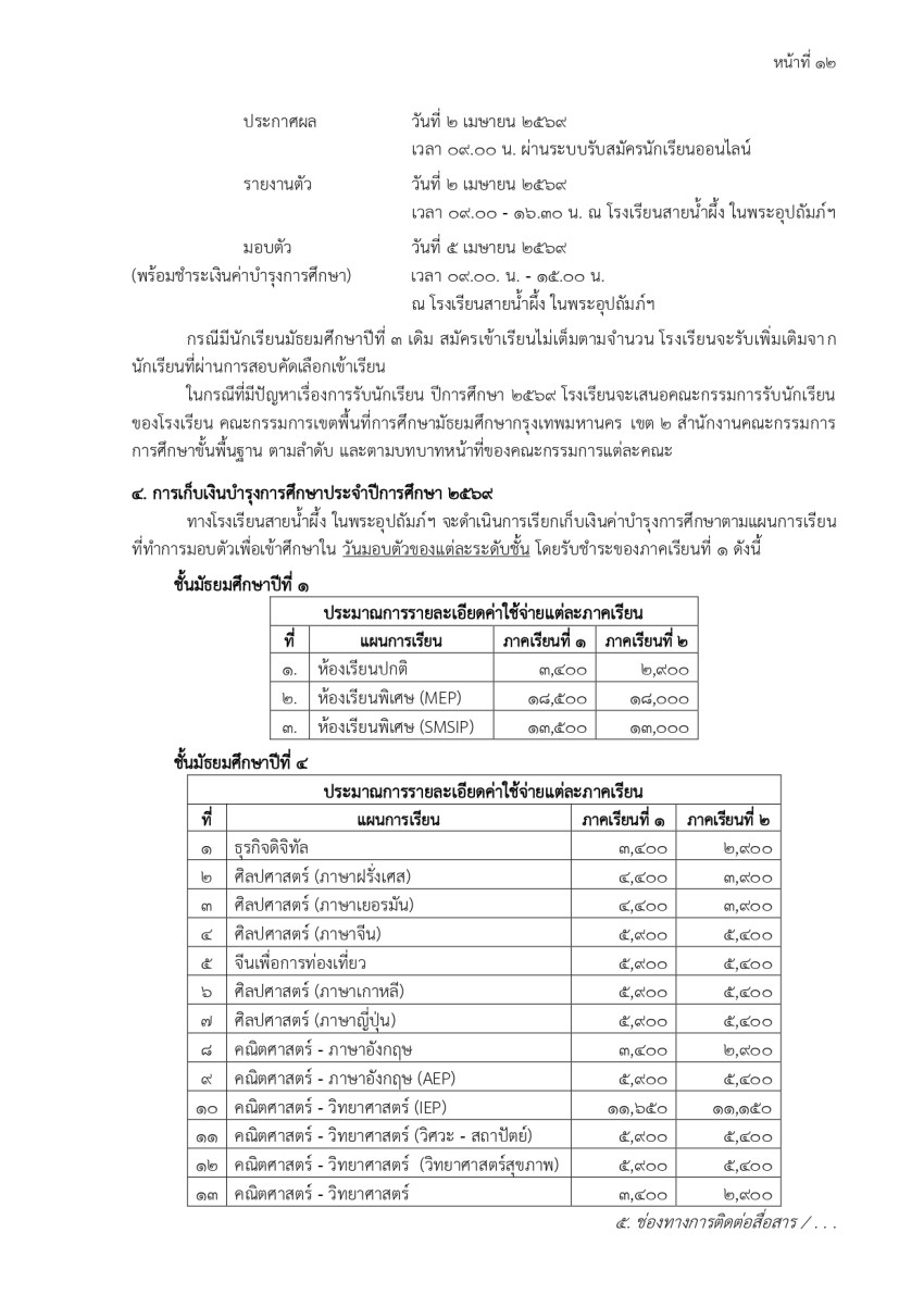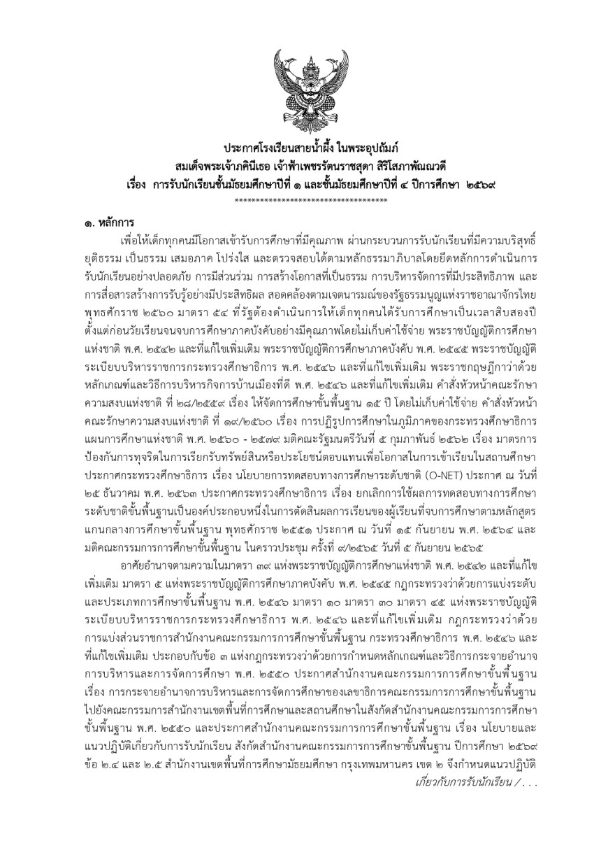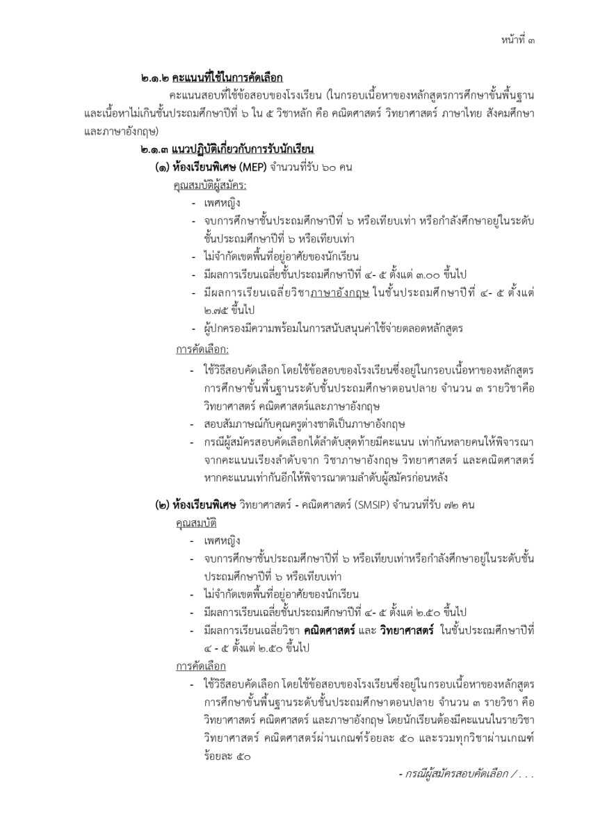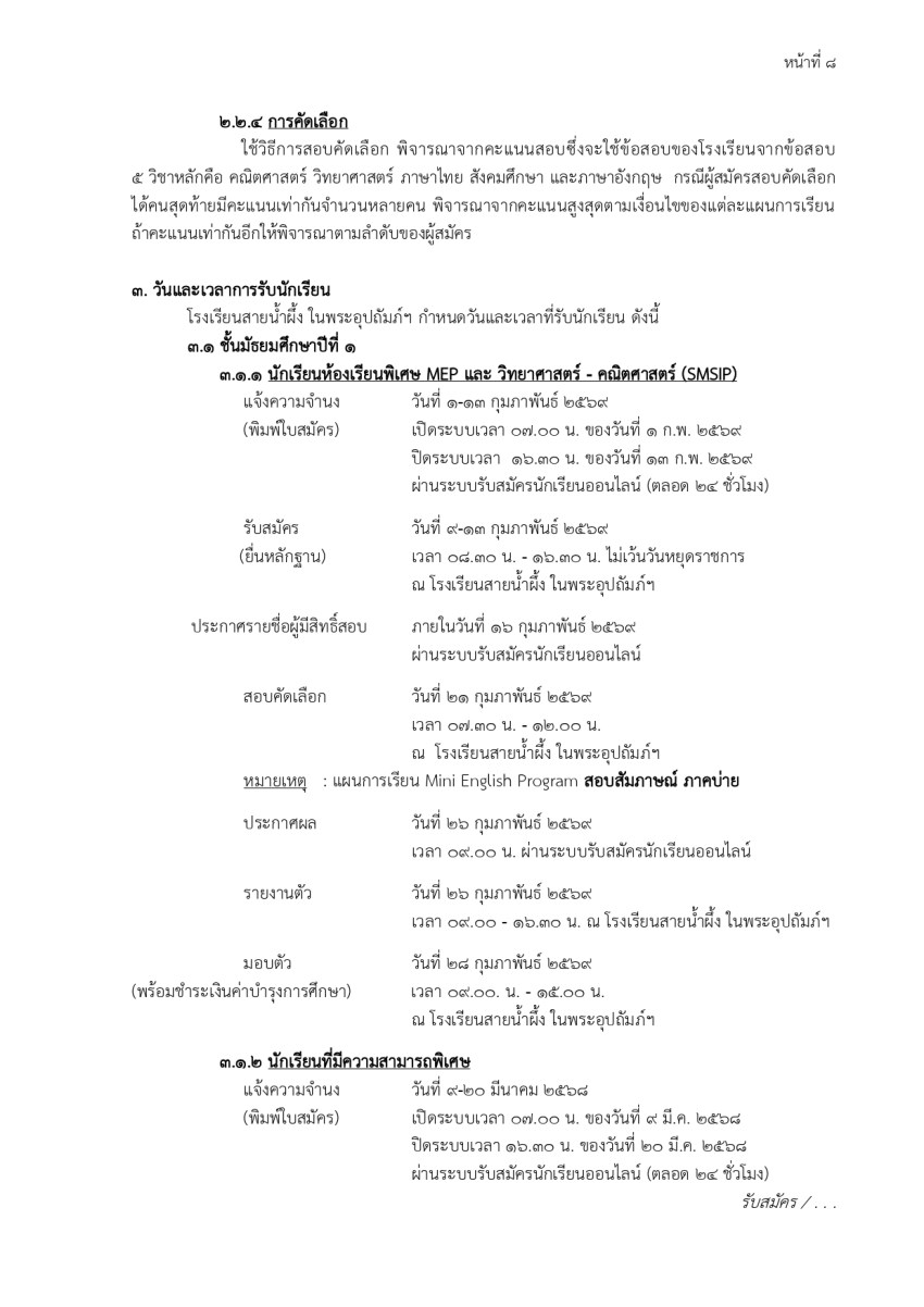 เลื่อนกำหนดการรับสมัคร นักเรียนระดับชั้นมัธยมศึกษาปีที่ 1 ห้องเรียนพิเศษ