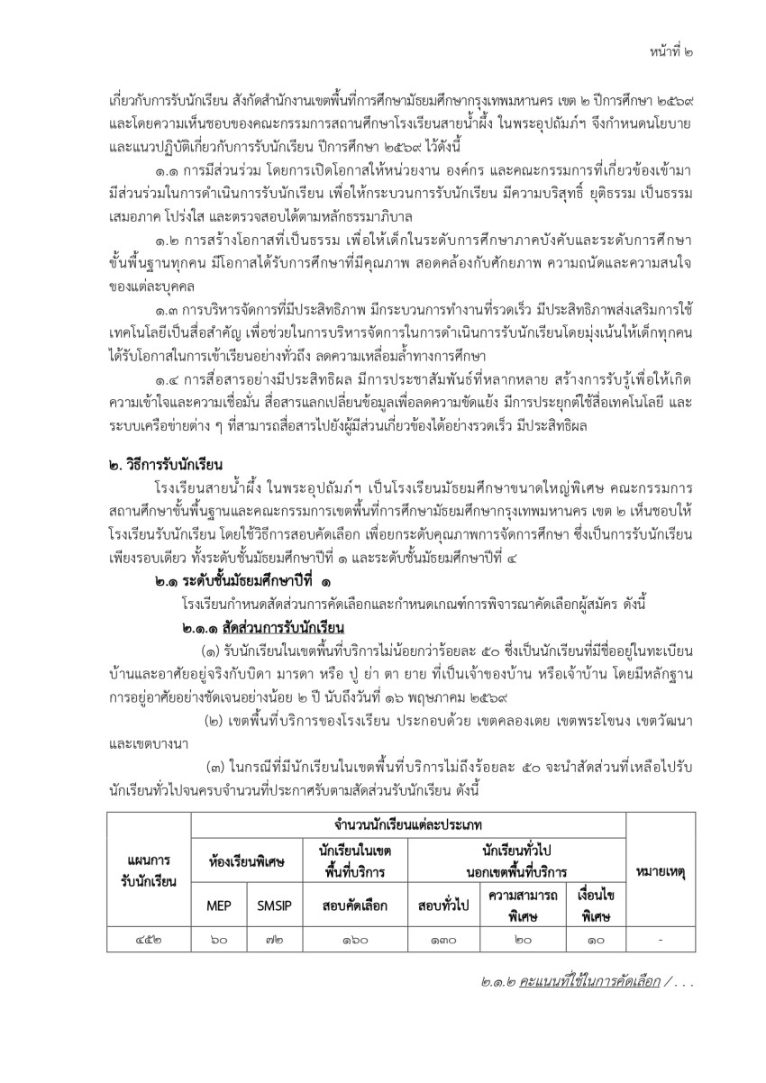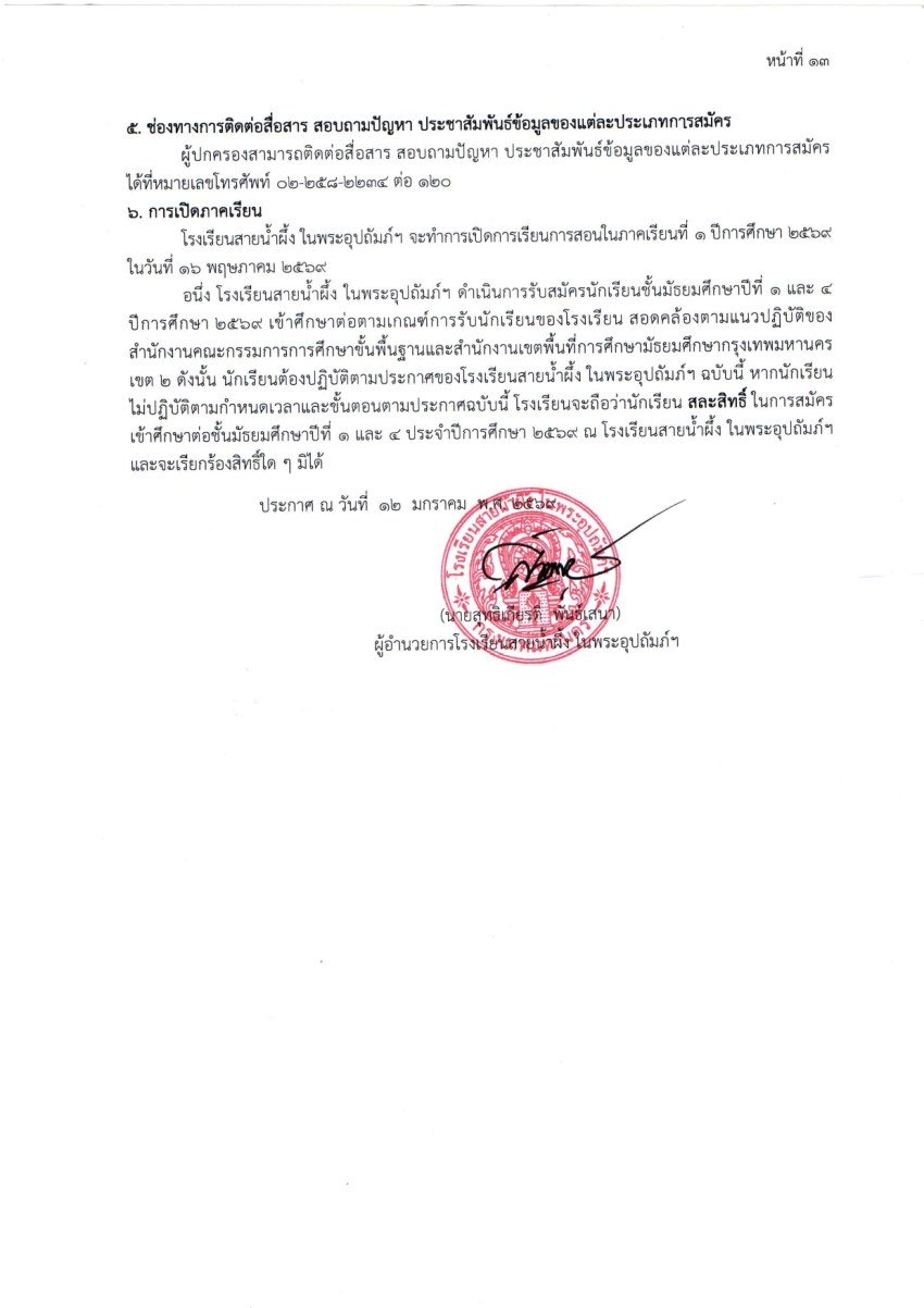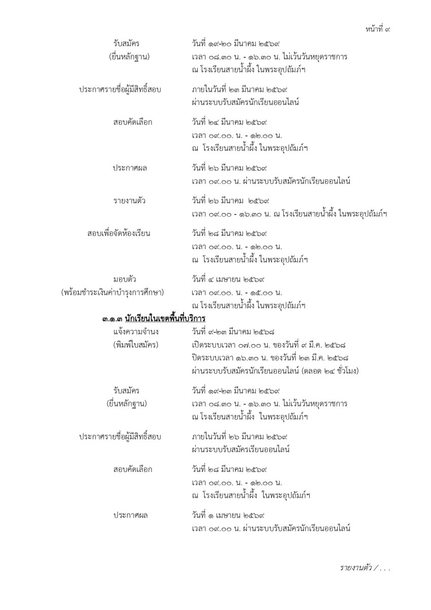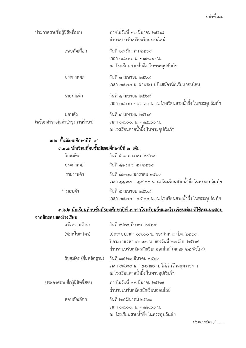 เลื่อนกำหนดการรับสมัคร นักเรียนระดับชั้นมัธยมศึกษาปีที่ 1 ห้องเรียนพิเศษ